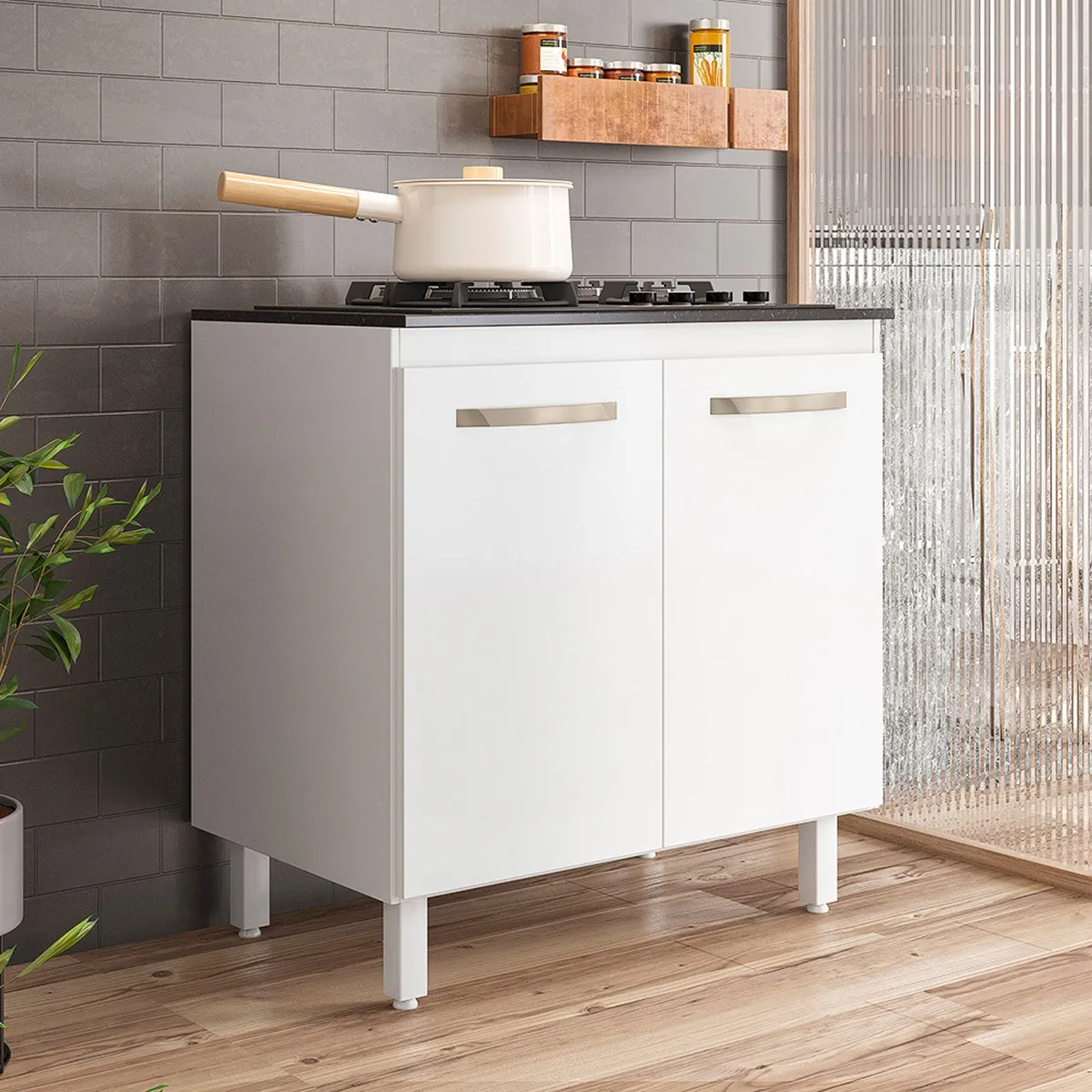 O Balcão para Cooktop 2 Portas 80cm é a escolha perfeita para quem busca funcionalidade e sofisticação na cozinha. Fabricado em MDP de alta qualidade e com acabamento em pintura UV, o móvel oferece resistência e durabilidade excepcionais. Seu design moderno, com tampo resistente já preparado para a instalação de cooktop de 4 ou 5 bocas, é ideal para deixar sua cozinha ainda mais aconchegante e organizada. Com excelente aproveitamento de espaço e ótimo compartimento para armazenamento, o balcão atende a todas as suas necessidades com elegância.