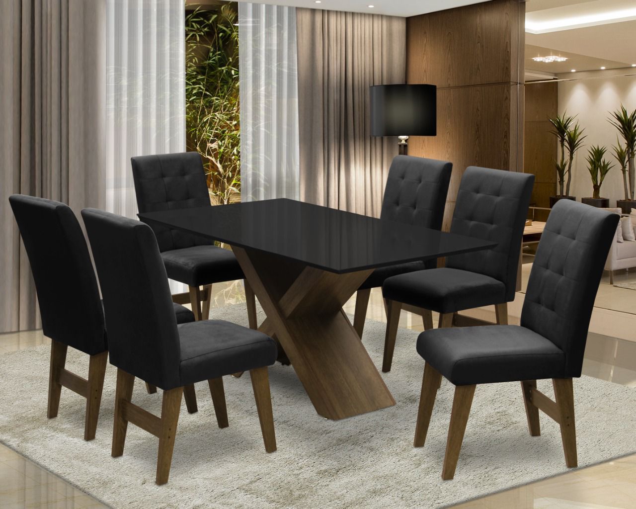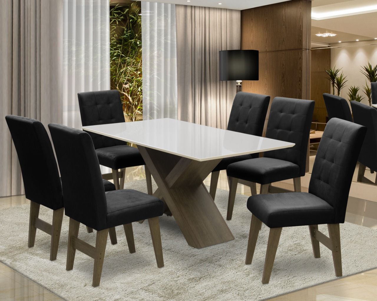 Esse lindo conjunto de Mesa Dubai vai levar charme e beleza à sua casa. Além de bonito e elegante, ela facilita o seu dia a dia, pois foi produzida com material resistente e fácil de limpar.