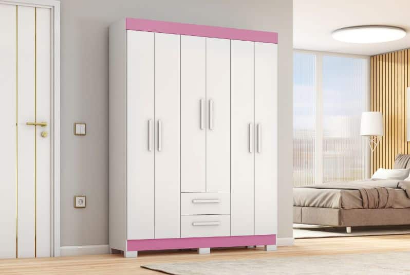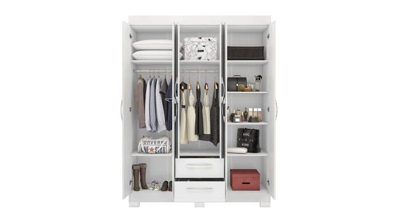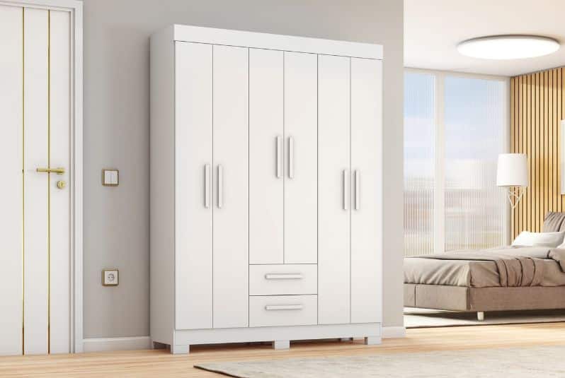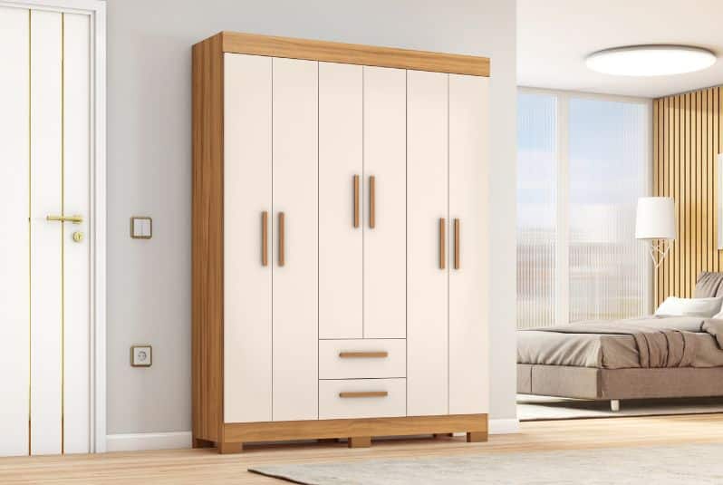 Apresentamos o Guarda-roupa NT 6015, a solução completa para organização e armazenamento no seu quarto. Com um amplo cabideiro interno e quatro prateleiras espaçosas, este guarda-roupa oferece espaço de sobra para guardar suas roupas, sapatos e acessórios de forma organizada e acessível!